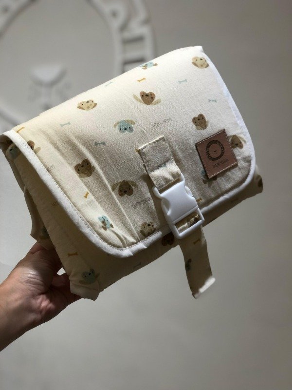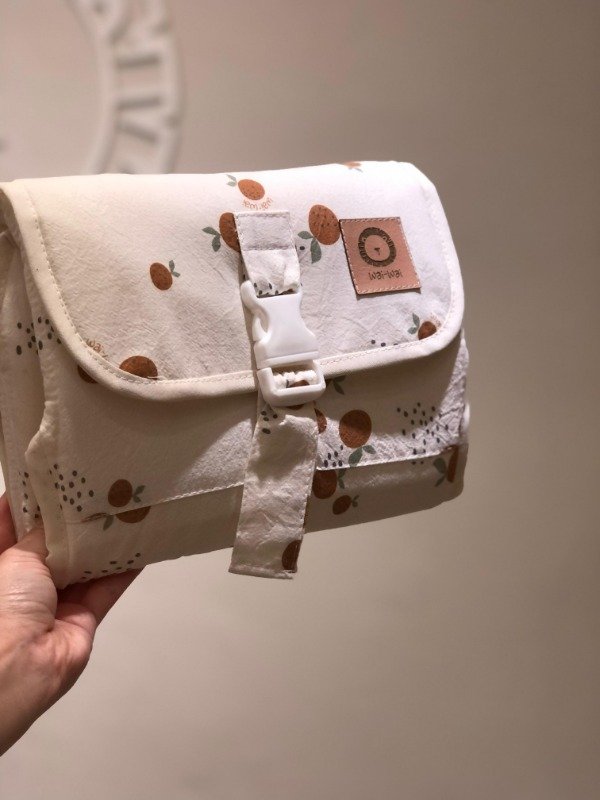 Cambiador portátil con solapa para pañales y compartimiento para toallitas húmedas.-