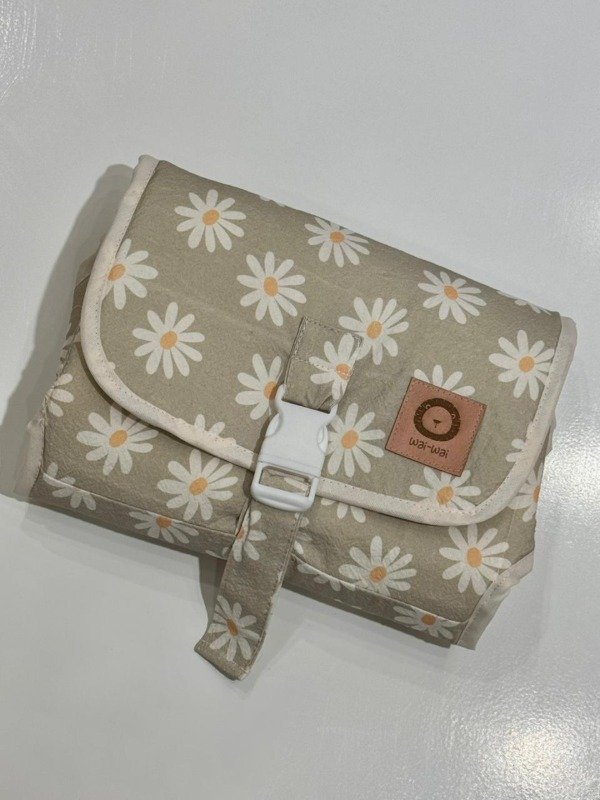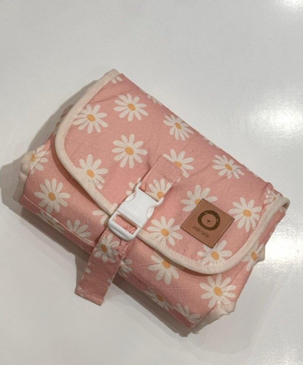 Cambiador portátil con solapa para pañales y compartimiento para toallitas húmedas.-