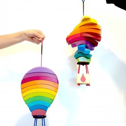 Aprender a enhebrar es una etapa suplementaria dentro del trabajo con los dedos. Asimismo, también se trabaja la coordinación ojo mano y la motricidad fina. Con este juego además del trabajo motriz del enhebrado, tenemos un juego de bloques que será el complemento ideal para construcción de puentes y túneles. Y porque no como ambientación del cuarto infantil.